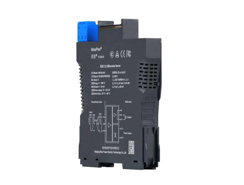 Temperature input isolated barrier, it converts the thermocouple/thermal resistance signals from a hazardous area into 4~20mA signals to a safe area by isolation. It has external cold junction compensation terminals. It needs a backplane power supply. The input, output, and power supply are galvanically isolated from each other. The self-test function is also available on this device. Calibrate the apparatus or modify parameters by using a handheld programmer.