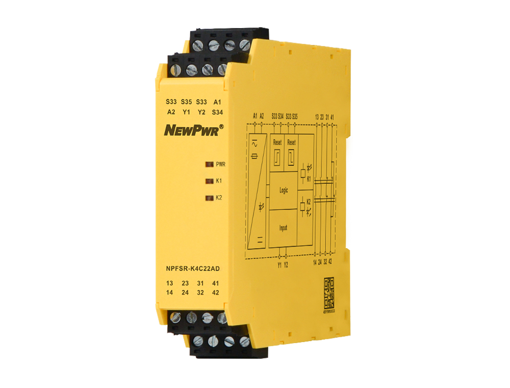 K series safety mat input safety relay is applicable to 2-wire NO contact safety mat input. When a certain weight is applied to the safety mat, the NO contact of the safety mat is closed, and the safety output contact of the control safety relay is open, so as to protect the operators in the dangerous area. Main features: 1oo2 architecture;With detection of input breakage;With auto reset and manual reset or monitored manual reset function;The safety function remains effective in the case of a component failure;The correct opening and closing of the safety function relays is tested automatically in each on-off cycle.