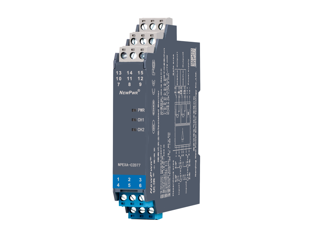 Resistance input isolated barrier, it transfers the resistance signals from a hazardous area to a safe area. It needs an independent power supply. The input, output, and power supply are galvanically isolated from each other.