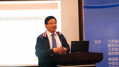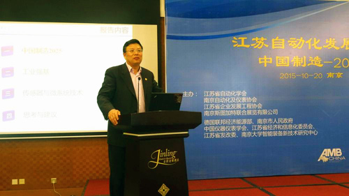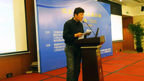 論壇主題為“中國制造2025”,論壇由江蘇省自動化學會、南京自動化及儀表協會、江蘇省企業發展工程協會共同主辦,南京自動化及儀表協會秘書長、東南大學智能機器人與運動控制研究所副所長,東南大學計算機硬件應用實驗中心主任馬旭東教授主持會議。