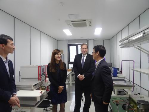 2015年11月13日,德國萊茵TUV集團大中華區(qū)執(zhí)行副總裁陶思騰(Thorsten Keiter)先生、德國萊茵大中華區(qū)工業(yè)服務(wù)部副總經(jīng)理陳燕女士一行應(yīng)邀來到南京優(yōu)倍電氣總部,考察了優(yōu)倍電氣技術(shù)研發(fā)中心、工程研究中心、自動化事業(yè)部、軟件部等部門,并與優(yōu)倍電氣董健總經(jīng)理等公司領(lǐng)導(dǎo)就開展國際間交流與合作充分交換了意見和看法,取得了令人滿意的成果。