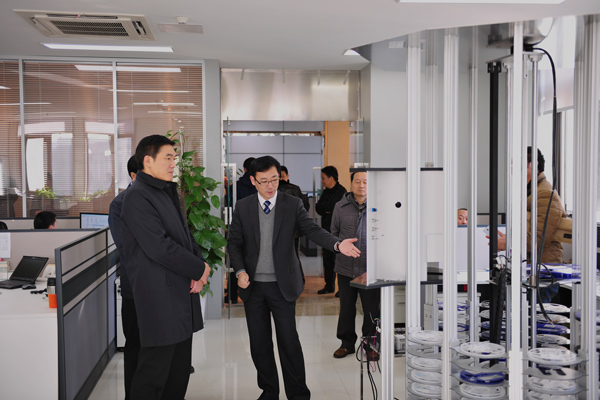 黃瀾副市長一行考察了我公司儀表、智能裝備、軟件等研發部門,詳細了解了我公司在以上工作上所取得的成績,并通過實時遠程系統考察了我司車間的智能裝備情況及信息化工作成果。