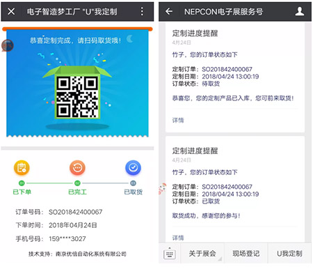 夢工廠還呈現(xiàn)了生產(chǎn)進度反饋,各個關(guān)鍵環(huán)節(jié)都會收到消息推送,讓客戶實時了解自己訂單的進度。
