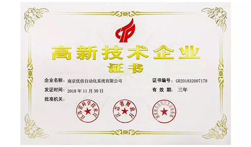 優倍自動化通過高新技術企業認定